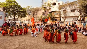 इयत्ता आठवी-नववीच्या विद्यार्थ्यांनी जेव्हा ‘लाठीकाठी’ची प्रात्यक्षिके सुरू केली, तेव्हा उपस्थितांच्या काळजाचा ठोका चुकला. शिस्त, वेग आणि अचूकता यांचा अद्भुत नमुना तिथे पाहायला मिळाला. इयत्ता तिसरीच्या चिमुकल्यांनी आपल्या लेझीमच्या तालावर सर्वांनाच ठेका धरायला लावला.