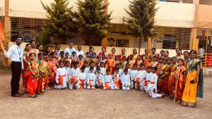 कार्यक्रमाची सुरुवात होताच अवघे विद्यालय ‘शिवमय’ झाले होते. बालवाडी च्या, चिमुकल्यां पासून ते नववी च्या किशोरवयीन मुलांपर्यंत प्रत्येकाच्या मुखात शिवरायांचा गौरव होता.